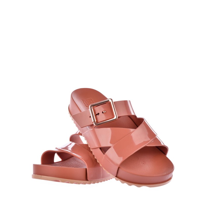Klapki damskie ZAXY w kolorze ciemnego beżu.